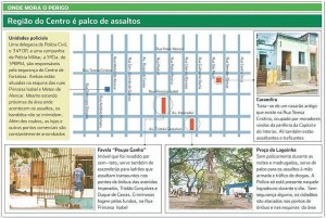 Mas é no quadrilátero formado pelas avenidas Tristão Gonçalves e Duque de Caxias e ruas Castro e Silva e Padre Mororó onde os assaltos acontecem com maior frequência durante o período noturno.