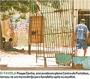 Além do ´Carandiru´, outro ponto que abriga marginais em pleno Centro da Capital cearense é um prédio abandonado situado na Avenida Imperador, onde, antes, funcionava a sede de uma administradora de loterias. Com a saída da empresa do local, o imóvel foi invadido por famílias vindas do Interior e da periferia da cidade. O lugar passou a ser conhecido como a ´Favela do Poupa Ganha´. Constantemente, marginais se refugiam ali depois de praticar assaltos nas vias próximas como as avenidas Imperador, Duque de Caxias e ruas adjacentes.