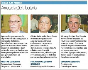 Apesar de o pagamento de impostos ser uma obrigação, a realização do Prêmio Contribuintes mostra que isso pode ser estimulado de forma saudável. Esse Prêmio é um estímulo, um reconhecimento às empresas pela contribuição que gera ao Estado e à sociedade.